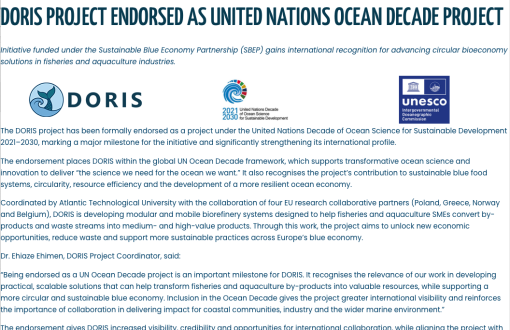 DORIS Project Endorsed as United Nations Ocean Decade Project, Strengthening Global Impact in Sustainable Blue Economy