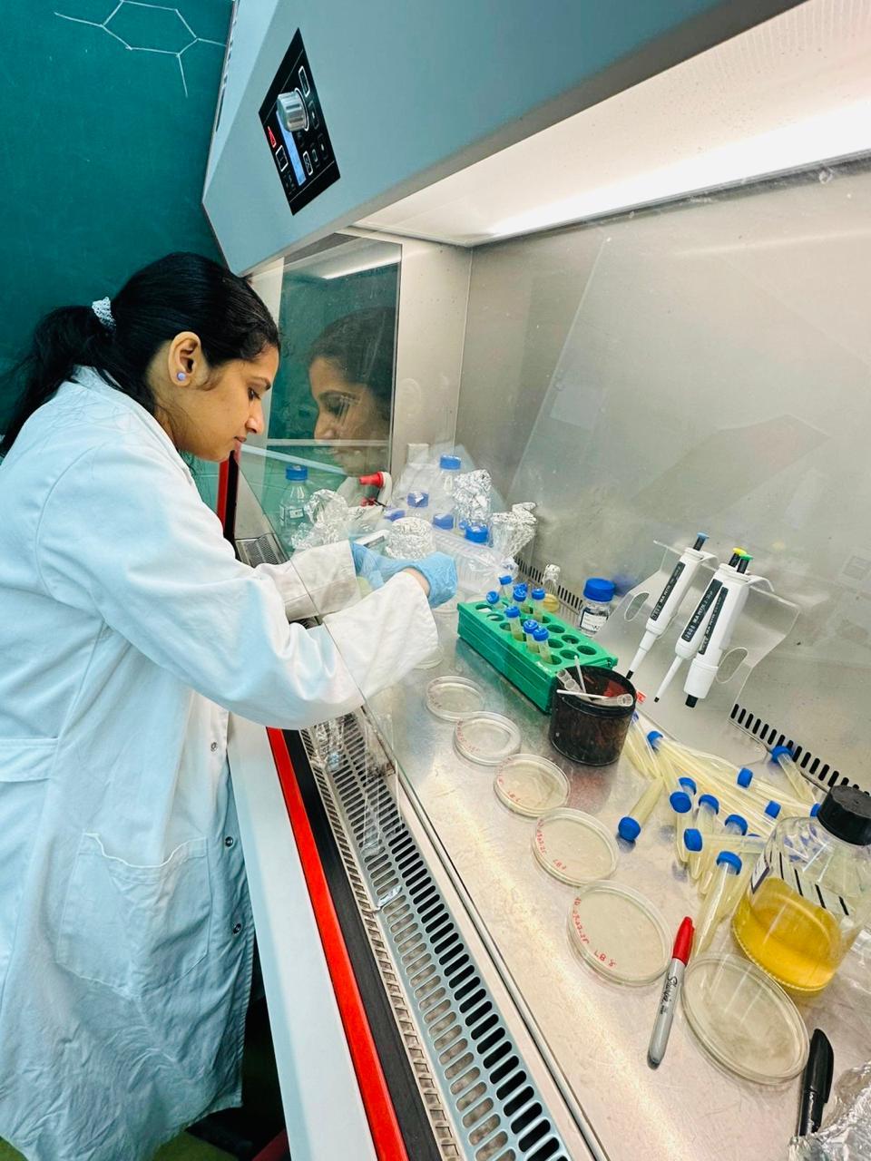 During her stay in Łódź, Aiswarya focused on the antibacterial properties of pre- and post-Microtron irradiated titanium dioxide (TiO₂) nanoparticles, contributing to the broader scope of her PhD research on nanomaterials. The internship also provided her with the opportunity to acquire new research skills and gain hands-on experience in advanced microbiological techniques